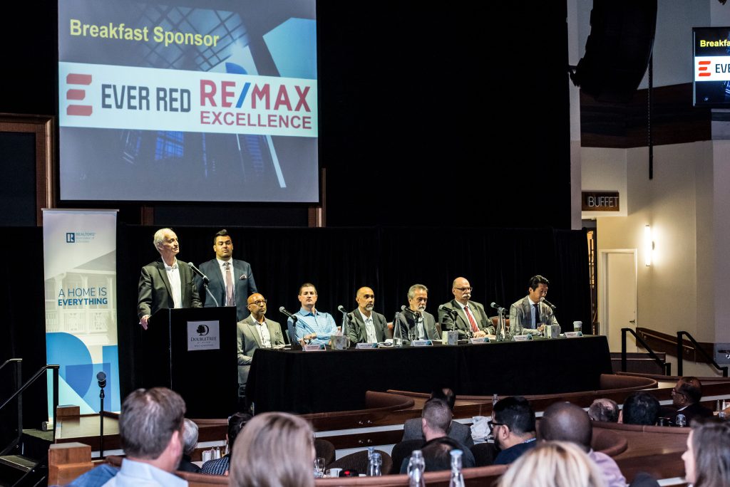 Don Patterson, Managing Partner & Broker (at podium), and Sam Narayan, Associate Broker/Owner (seated left) at the 2022 RAE Commercial Panel.