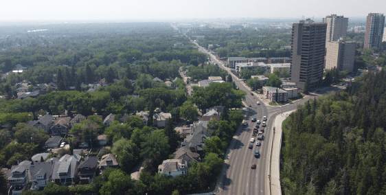 - To the East and South the property overlooks the widest point in the Mill Creek Ravine, and Campus St. Jean, and Edmonton’s heavily treed mature neighbourhoods, respectively.